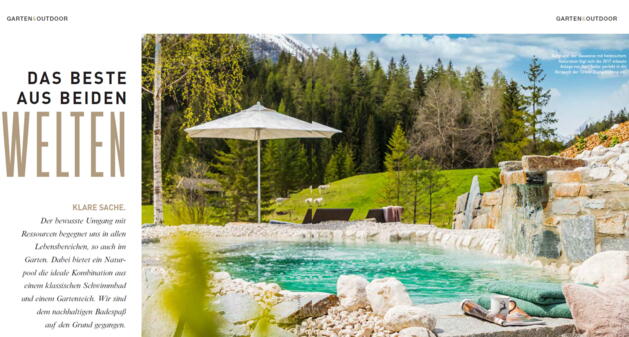 Unter dem Motto "Klare Sache" beschreibt Dagmar Hölzl in der aktuellen Ausgabe der Chefinfo LIVING den bewussten Umgang mit unseren wertvollen Ressourcen - auch im Garten. Dabei zeigt sie mit Schwimmteich und Naturpool Beispiele mit positiver Ökobilanz auf