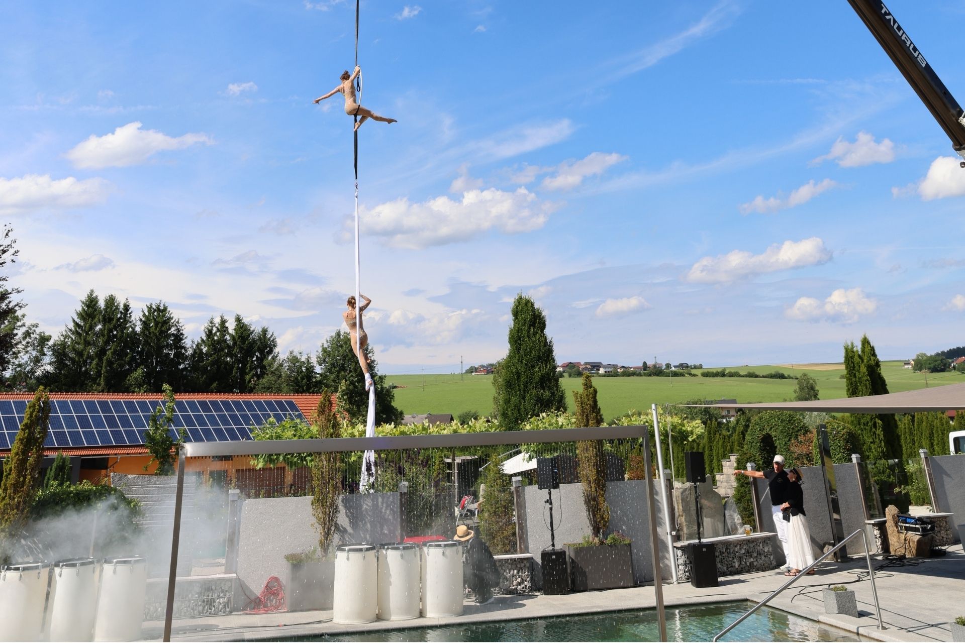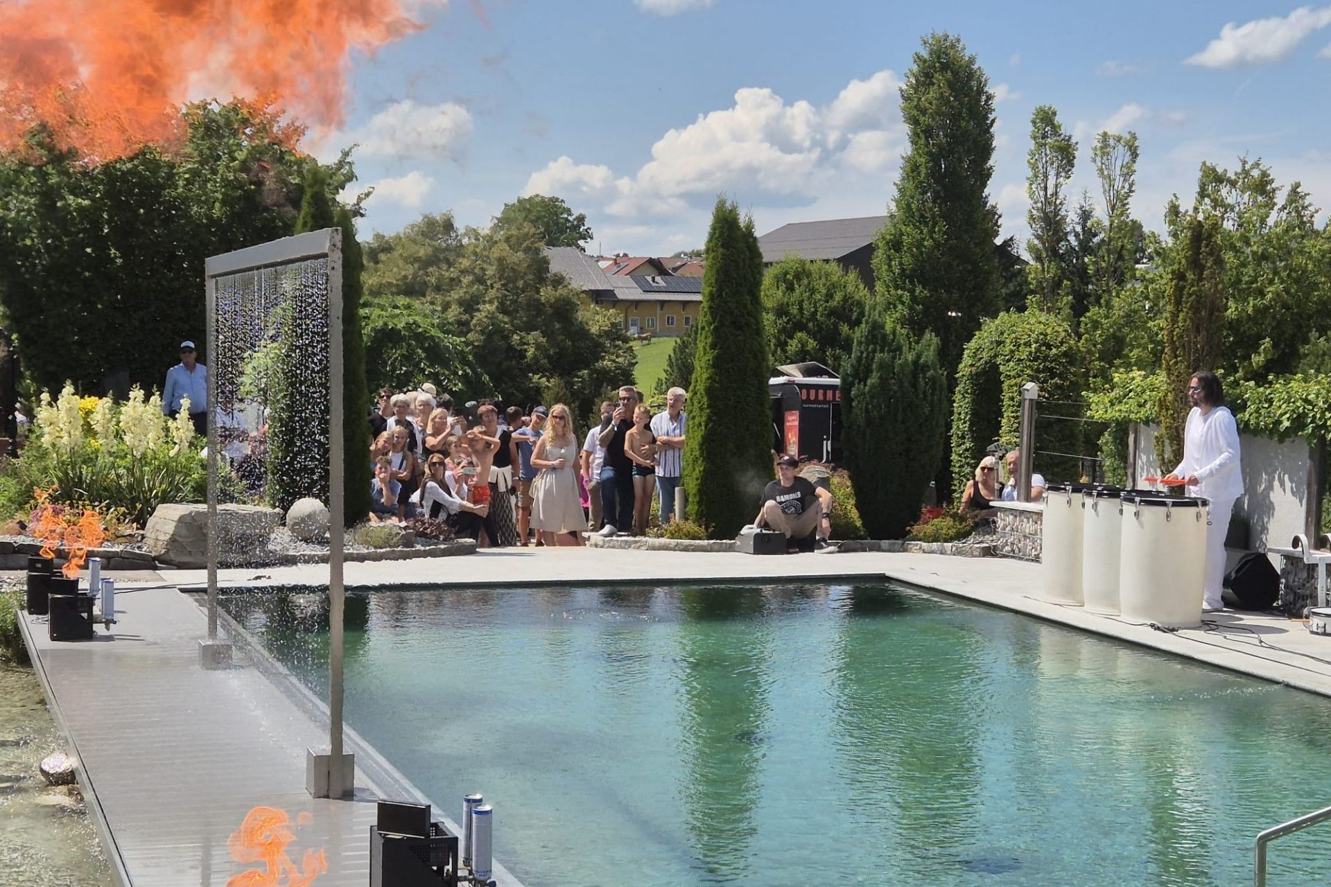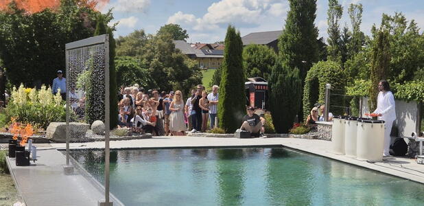 Den ganzen Tag gab es im 20.000m2 großen Schaugarten zahlreiche Attraktionen zu bestaunen, wie die beeindruckenden Stunts der Tuchakrobatin Polina mit Domino Blue, rhythmisch pulsierende Auftritte einer Drummer-Formation am Naturpool inklusive Feuershow oder eine atemberaubende Modellflugshow. Biogärtner Karl Ploberger informierte über den „Garten im Klimawandel für intelligente Faule“ und beantwortete Fragen der Gartenfreunde. Kulinarische Schmankerl an diversen Imbiss-Ständen, Live-Musik von DAYdreamin2 zu Beginn und Harry Ahamer Acoustic Duo bis in die Abendstunden sorgten für Wohlbefinden, gute Laune und einen unvergesslichen Tag.