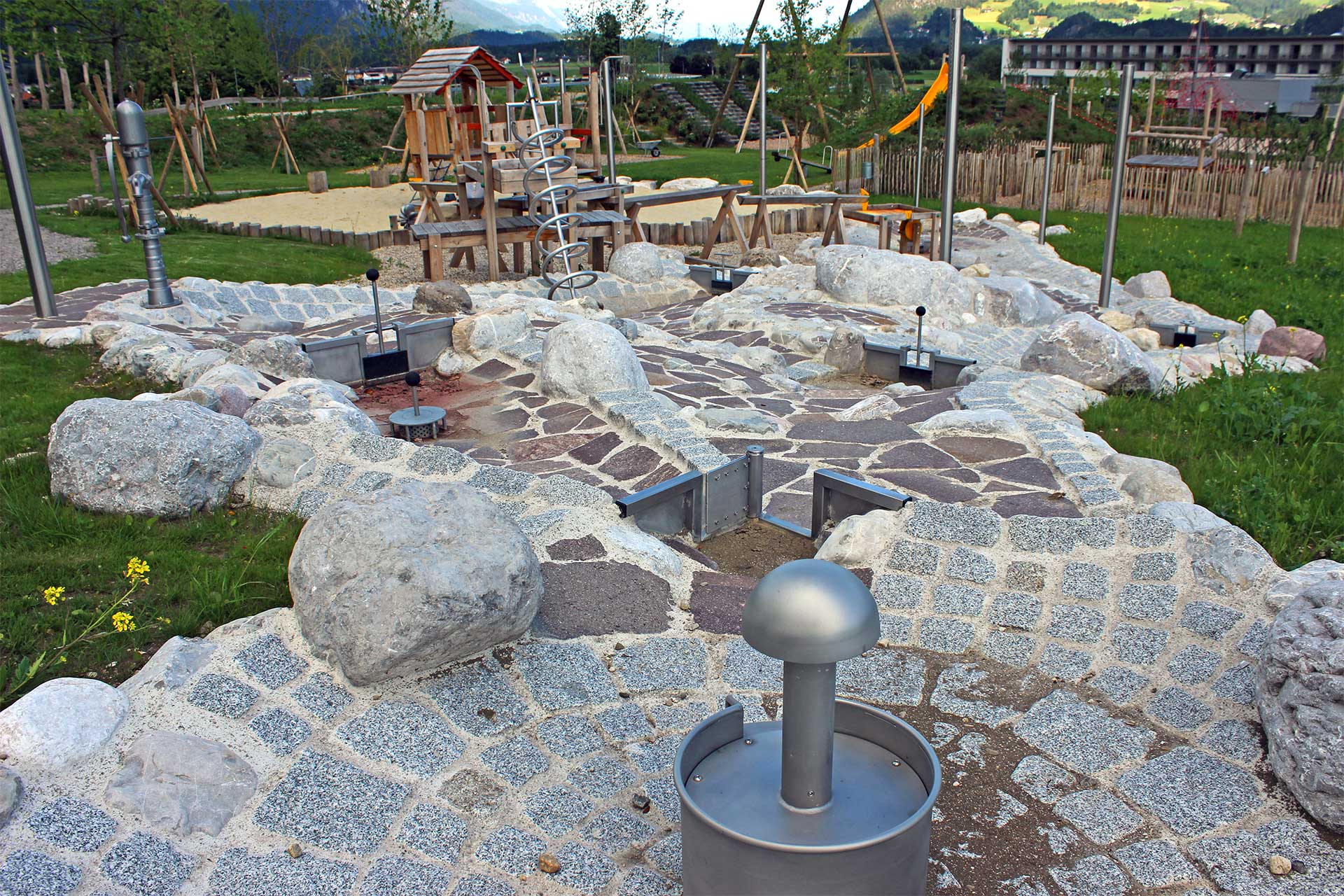 - kreative Kombinationen aus Pflanzen, Wasser und Stein,